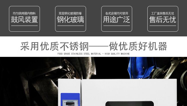 本系列烤箱在工作室后部裝有發(fā)熱管,后面裝有鼓風(fēng)裝置,溫度控制儀控制溫度恒定及高低,工作時經(jīng)發(fā)熱管加熱再經(jīng)鼓風(fēng)裝置循環(huán)流動,確保溫度均勻,四周圓弧設(shè)計,擱板上下間距可調(diào),內(nèi)置感溫探頭。