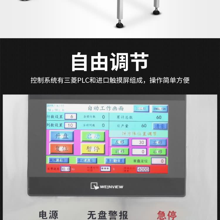 ◆ 根據(jù)用戶需要,擺放的個(gè)數(shù),月餅直徑大小,自由修改參數(shù),自動(dòng)將月餅排放在烘盤(pán)中。