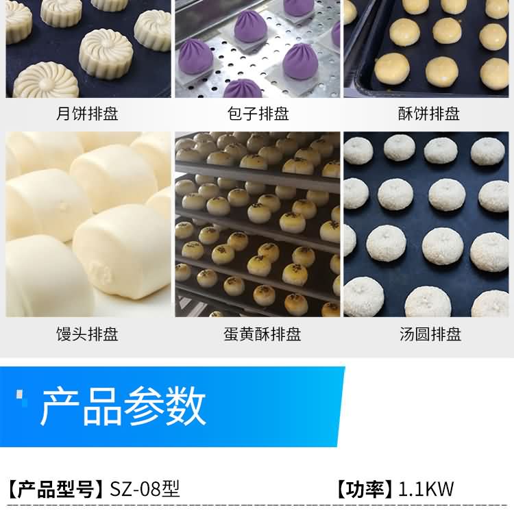 SZ-08型月餅自動(dòng)排盤(pán)機(jī),可同于制作各種月餅。適用于蛋糕房、休閑食品廠、食品加工產(chǎn)、面包房、月餅加工廠、超市、學(xué)校、食堂等各種工作場(chǎng)所??蓾M足不同客戶群體。免費(fèi)提供工藝技術(shù)。